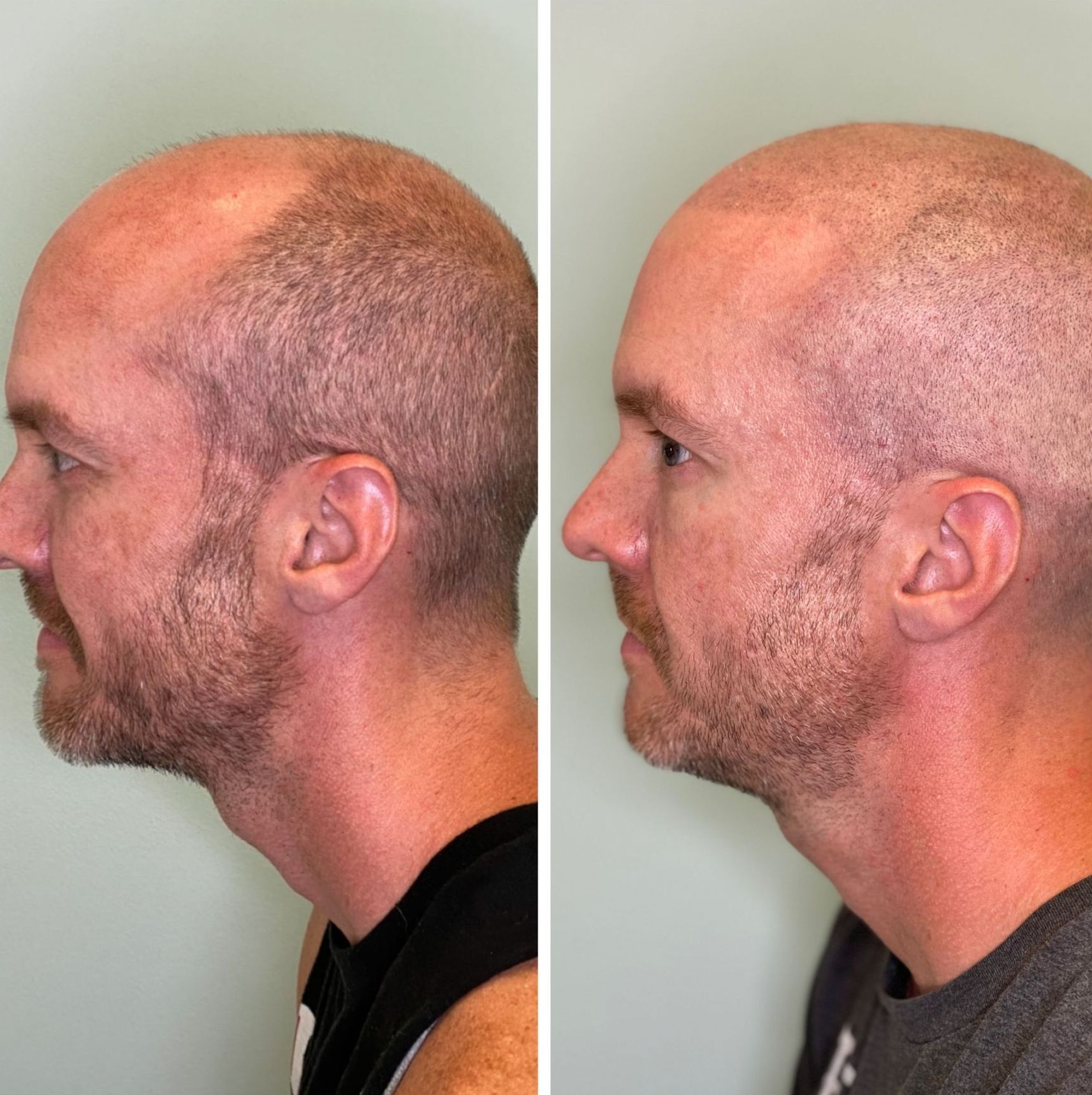 The procedure takes about two or three sessions, usually three to five hours each. While micro scalp pigmentation is a permanent treatment, it can be removed with a corrective procedure or laser treatment. At your consult, we can perform a small patch test on an inconspicuous part of your scalp before completing the full treatment to find the perfect color. Finding a natural-looking hairline is the most crucial aspect of micro scalp pigmentation to create the illusion of hair and leave the client with a natural finish.